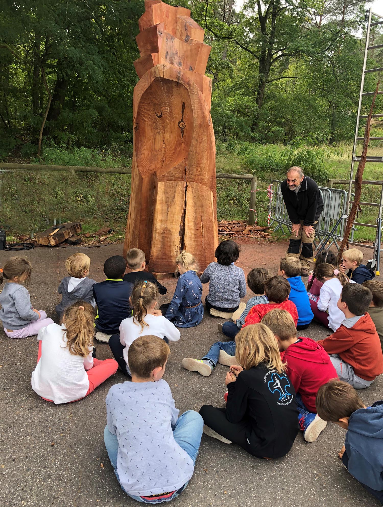 Le séquoia a été travaillé patiemment tout l’été et révèle des formes et des couleurs magnifiques. Le choix de l’abstraction laisse libre cours à l’interprétation de chacun. C’est ainsi que les enfants de l’école élémentaire de Samois, rassemblés vendredi 23 septembre y ont vu un trône, un rocher, une cascade, une main, un éventail ou encore une ville ou tout simplement la nature !