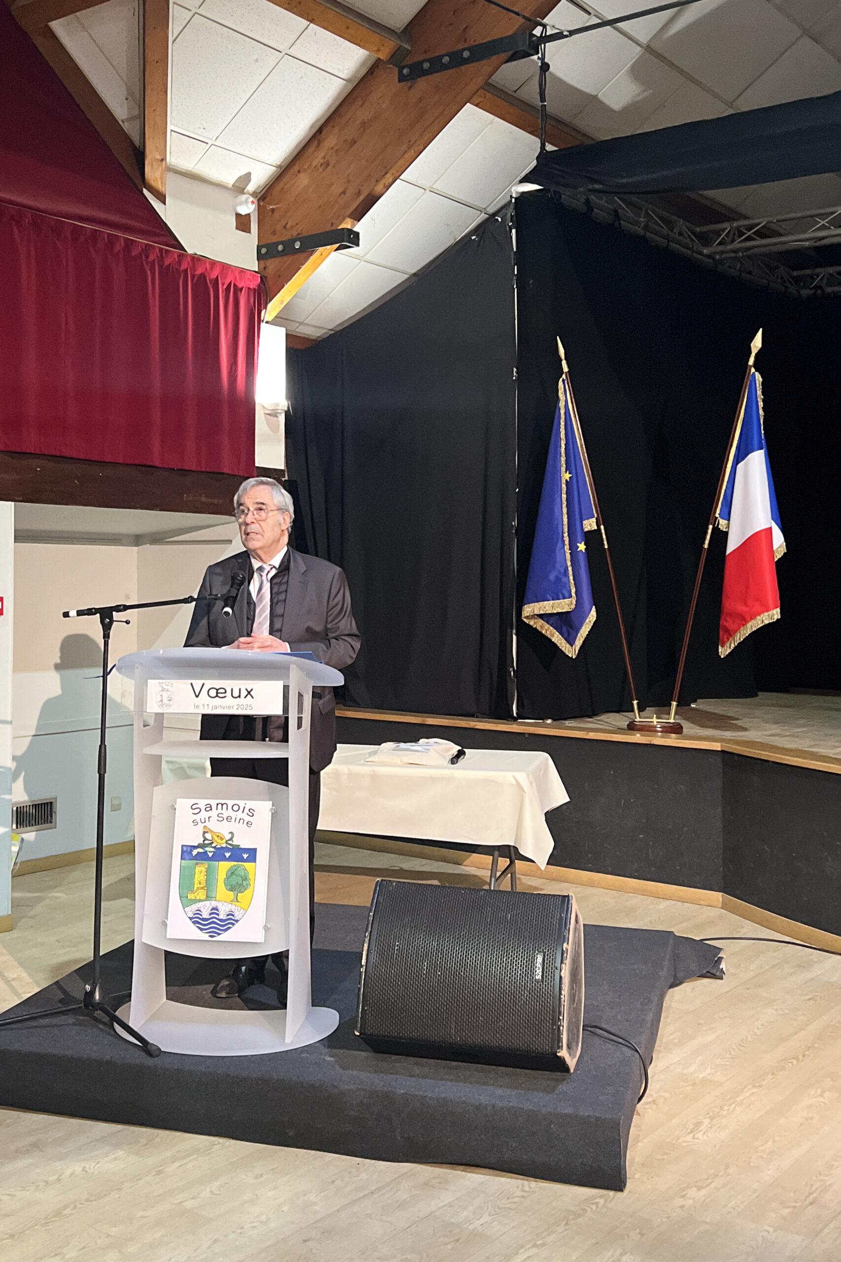 Samedi 11 janvier, la cérémonie des vœux s’est tenue à la Samoisienne en présence d’élus locaux, parmi lesquels Monsieur le Sous-préfet Thierry Mailles, de Monsieur Valletoux, député de Seine-et-Marne et de Monsieur Gouhoury, président de la Communauté d’Agglomération du Pays de Fontainebleau. L’occasion de revenir sur les réalisations passées et futures.