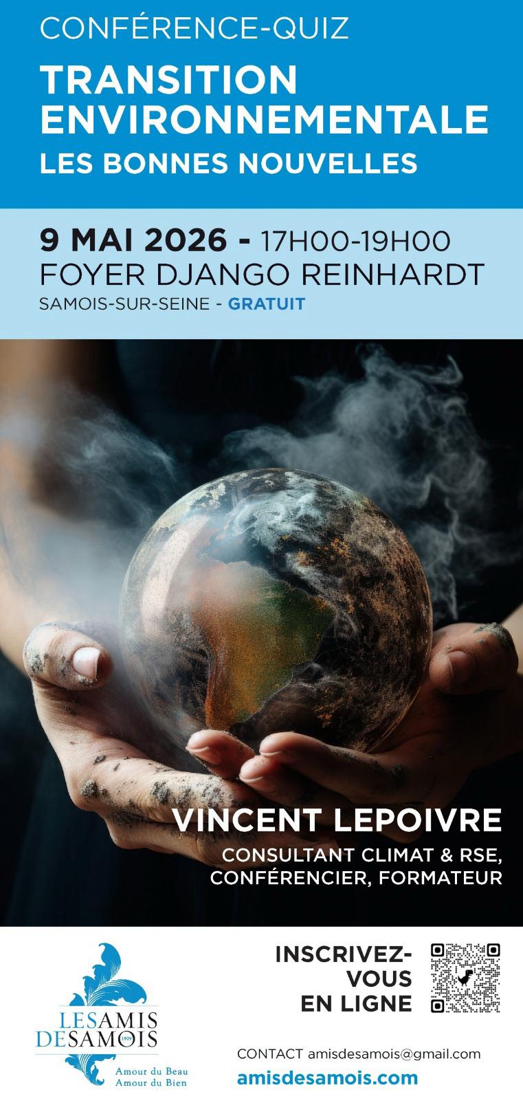 Les Amis de Samois vous invitent à challenger vos connaissances sur la transition environnementale, démêler le vrai du faux sur les enjeux énergie-climat-ressources, et surtout repartir avec de l’action, du pragmatique et du positif.