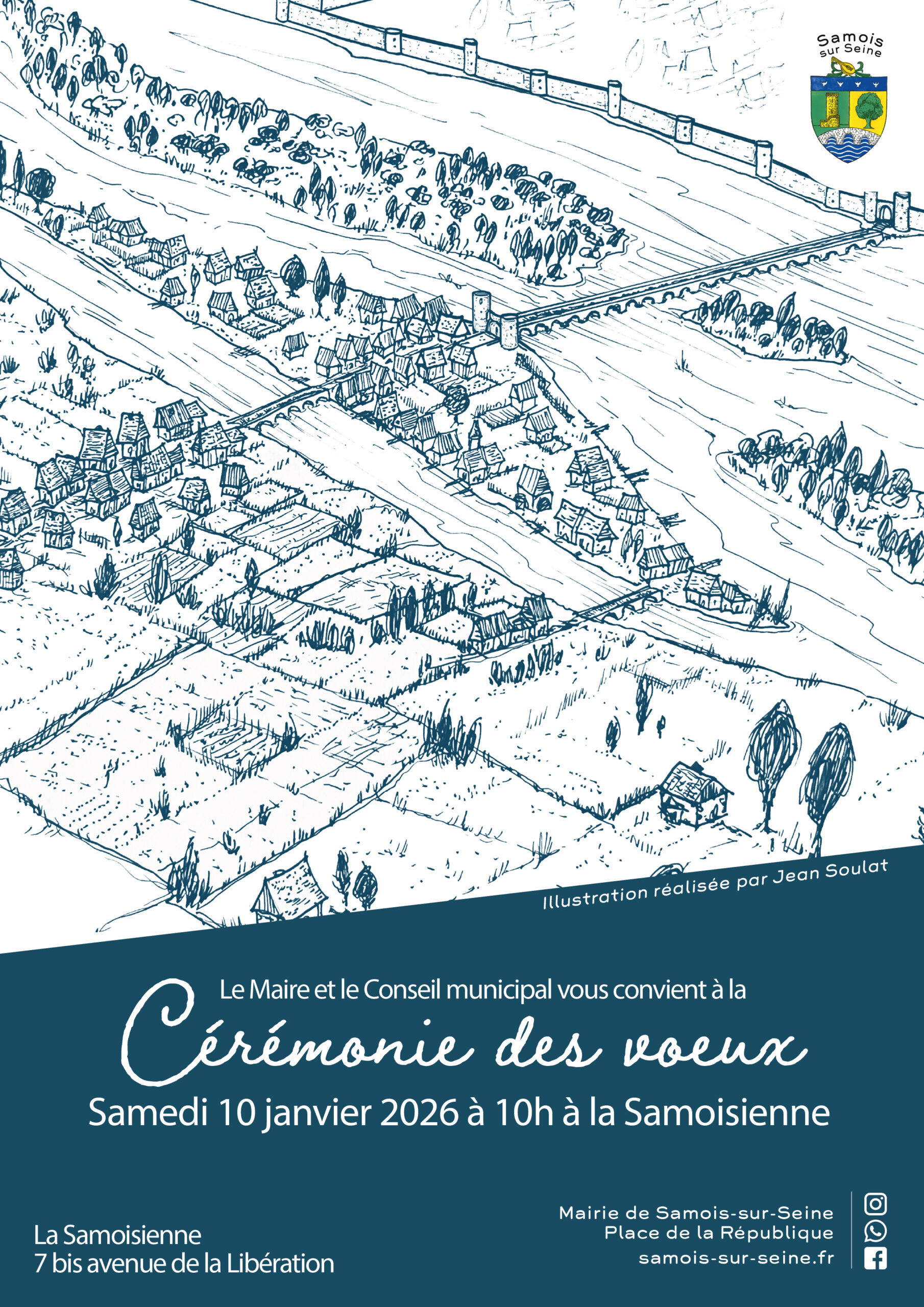 Monsieur le Maire, Michel Chariau et l’ensemble des membres du conseil municipal de Samois-sur-Seine auront le plaisir de vous accueillir samedi 10 janvier 2026 à 10h à la Samoisienne (7 avenue de la libération), pour vous présenter leurs vœux pour l’année à venir.