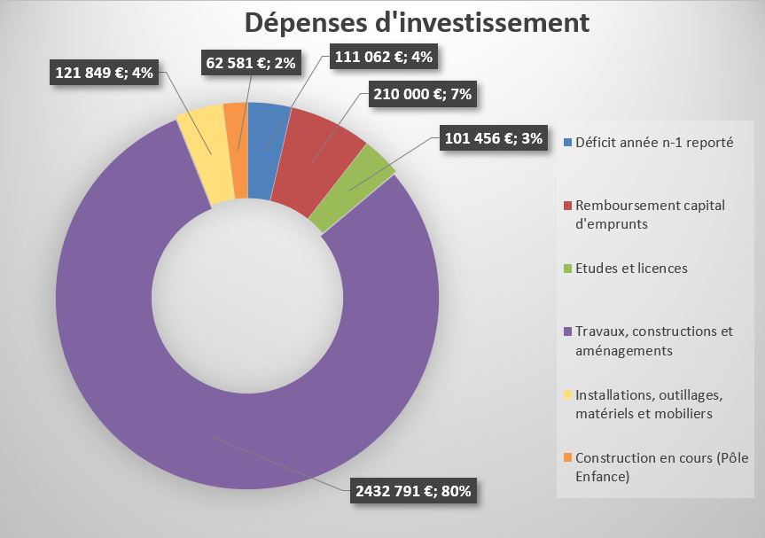 Concernant les opérations d’investissement, l’enveloppe votée s’élève à 3 039 738 €.